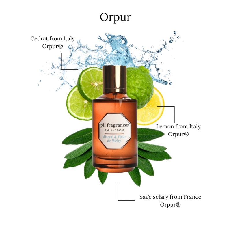 The fragrance Mistral & Sel de Vichy is composed by some naturals extracts of Bergamot, Cedrat and Cedar.